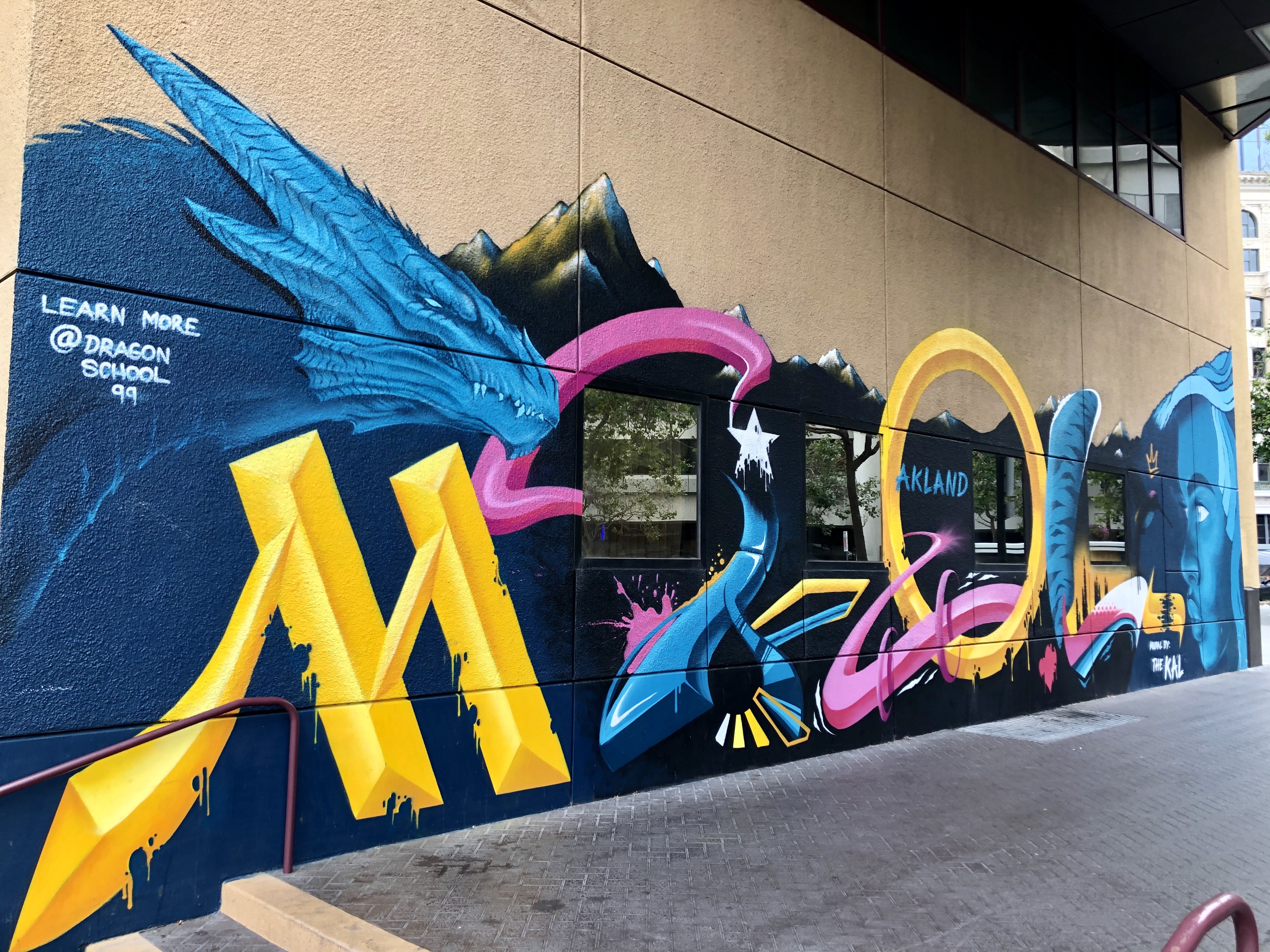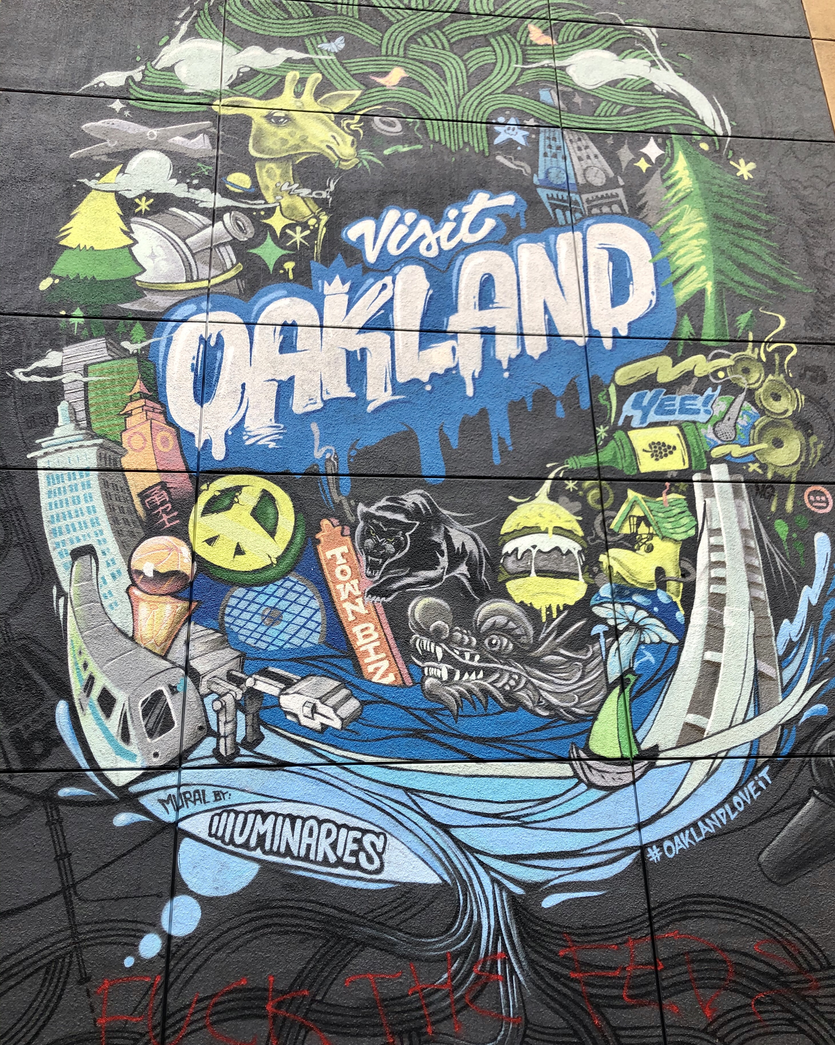 Enjoy a selection of the sweet art adorning buildings in Oakland.